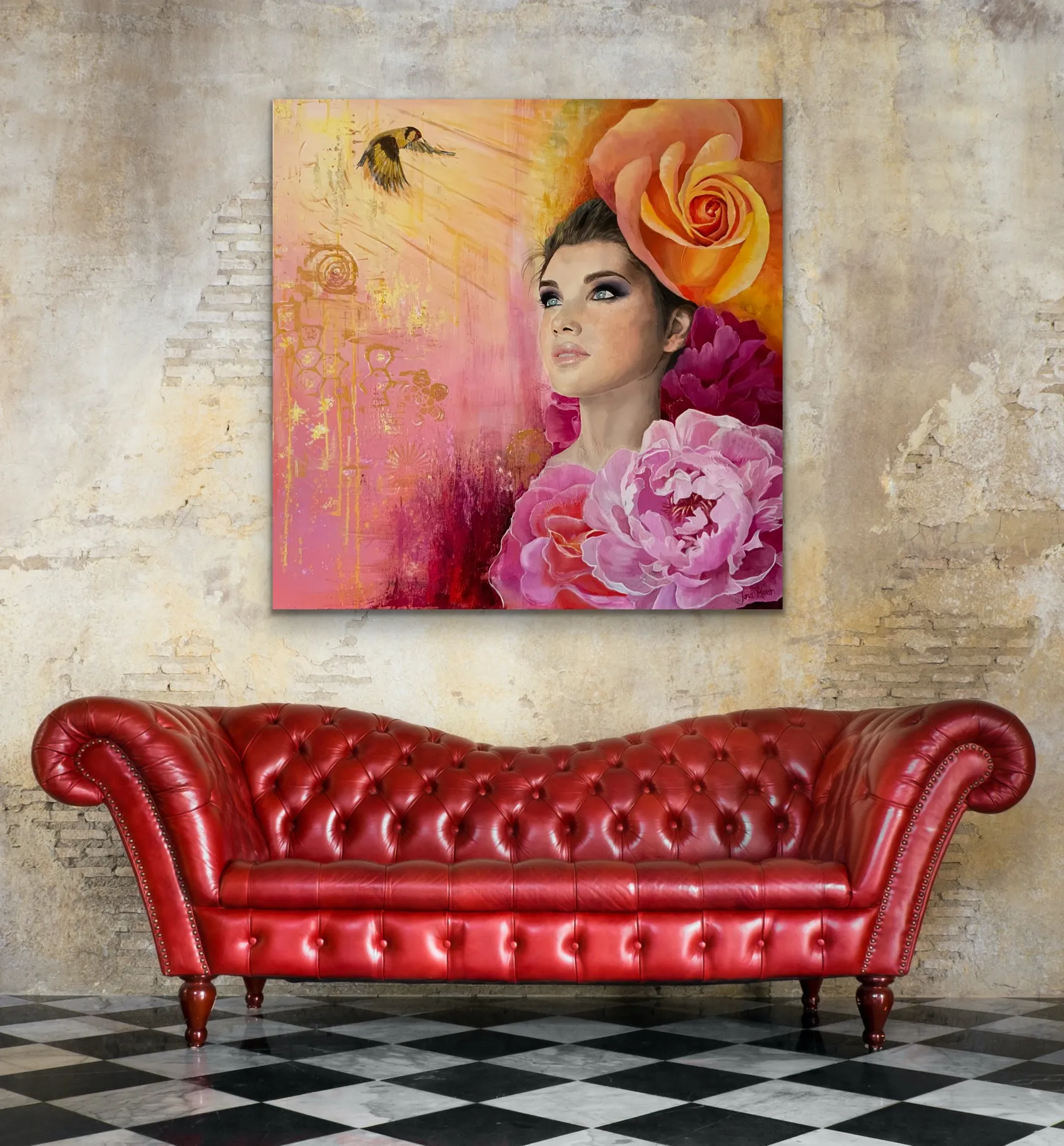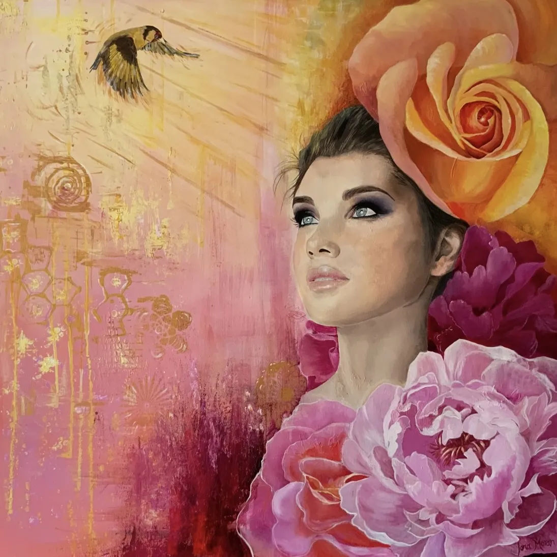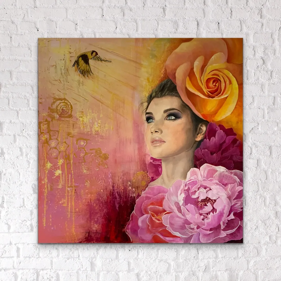 She has been able to express this through her senses, that often become dulled by our busy lives. The goldfinch is seen as an intermediary between humans and the divine, carrying messages from the heavens to the earthly realm.