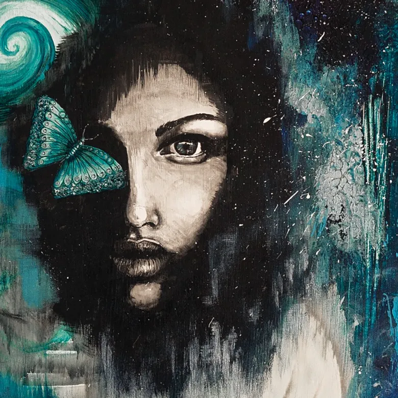 By incorporating these colours into the painting, Iona may be suggesting that transformation and personal growth require a period of reflection and inner work.