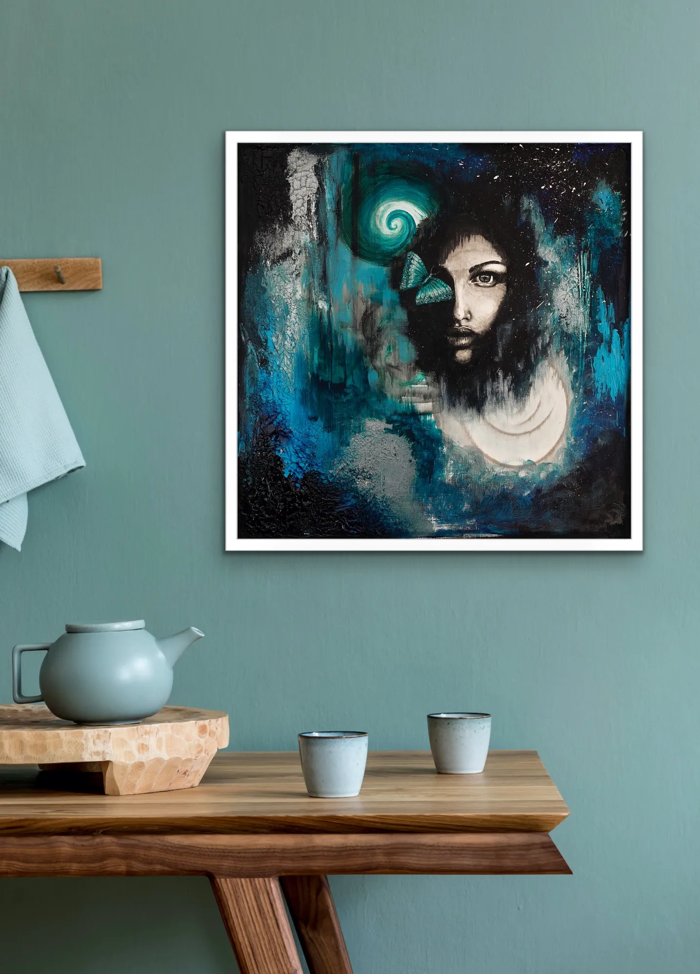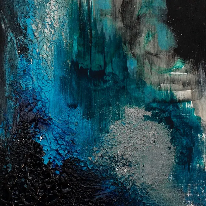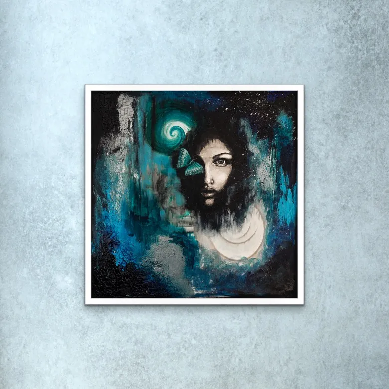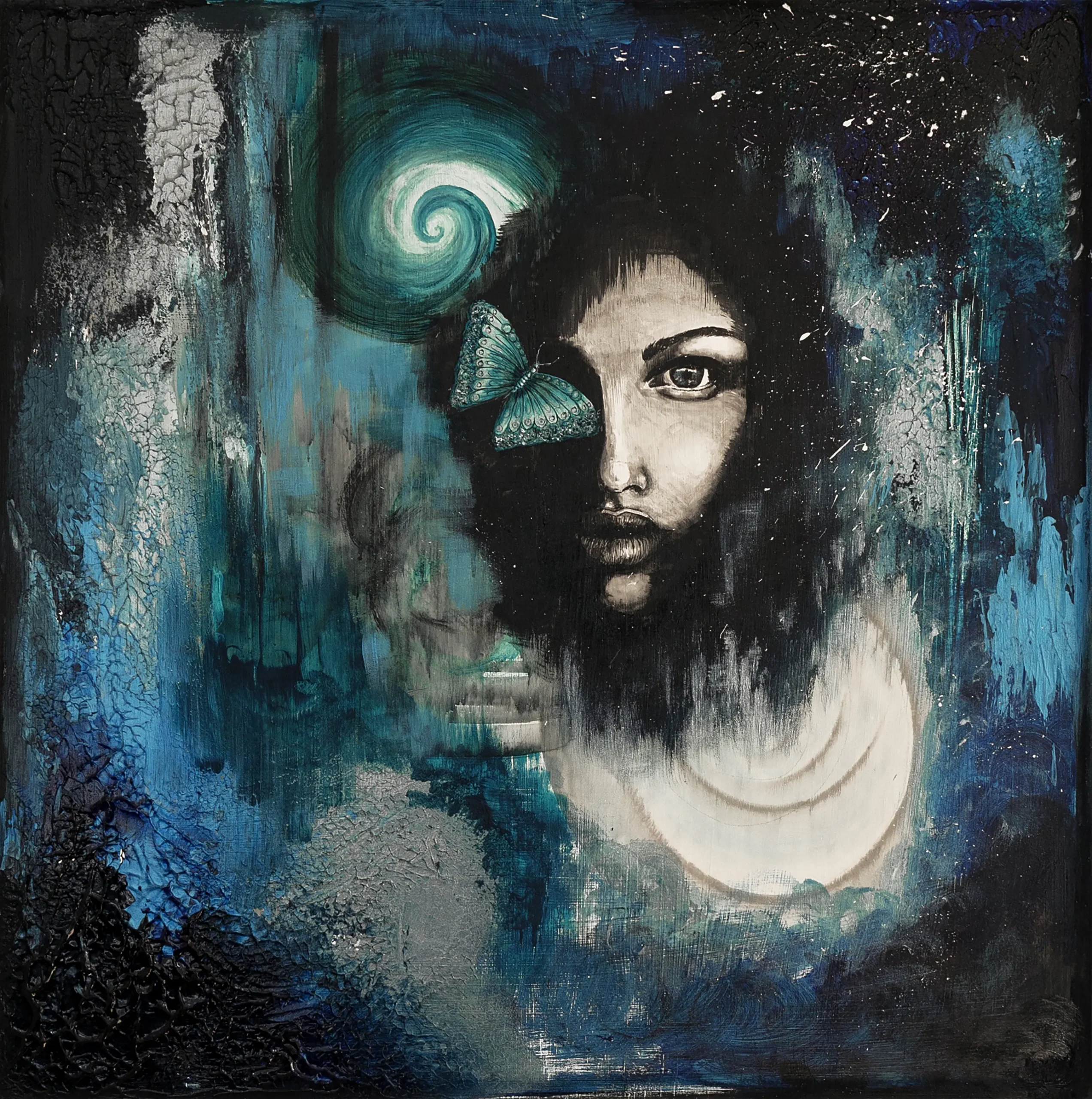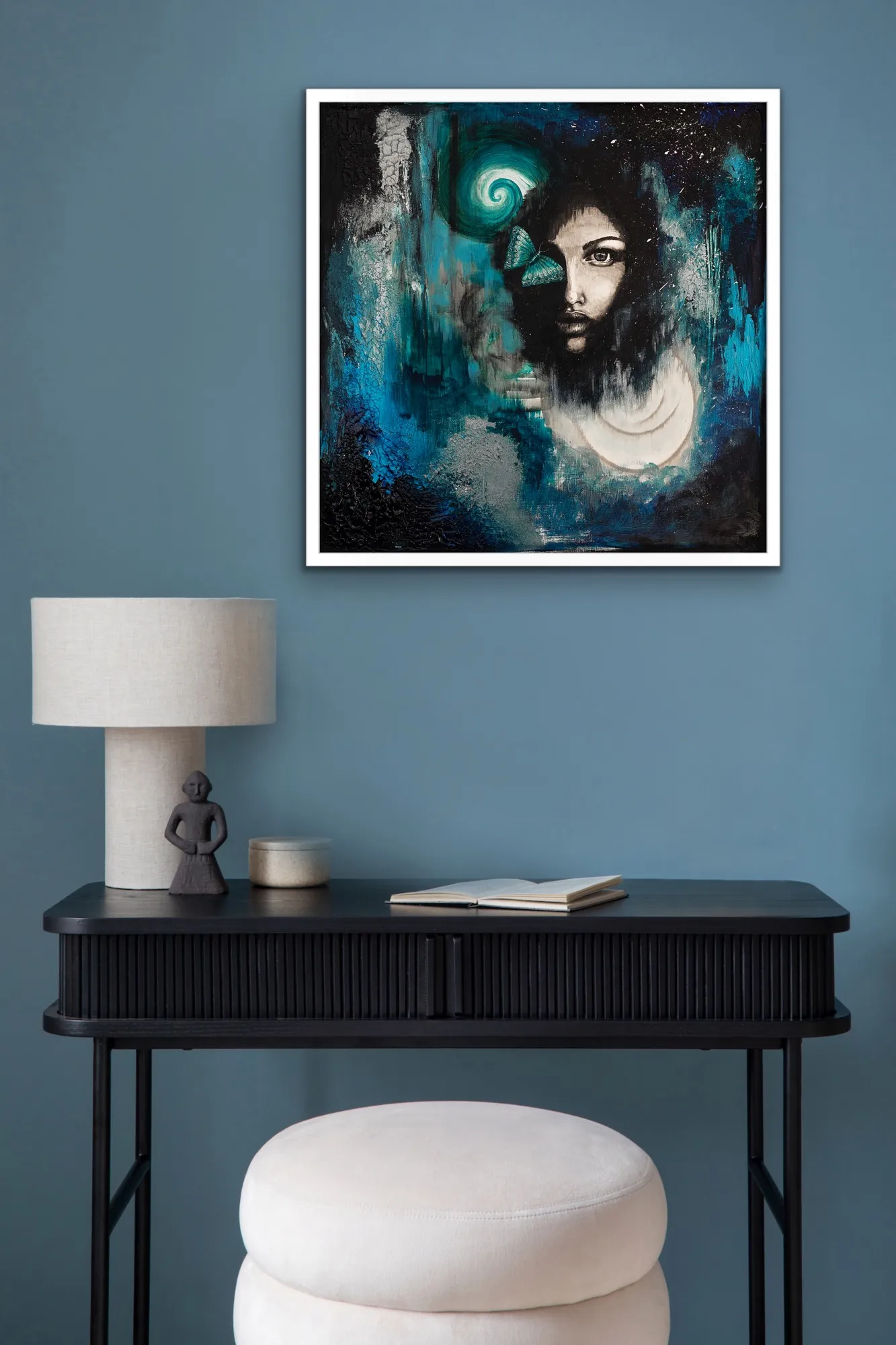 Iona has used blues and silver in her painting as these colours can be associated with themes of reflection, introspection and inner calm.
