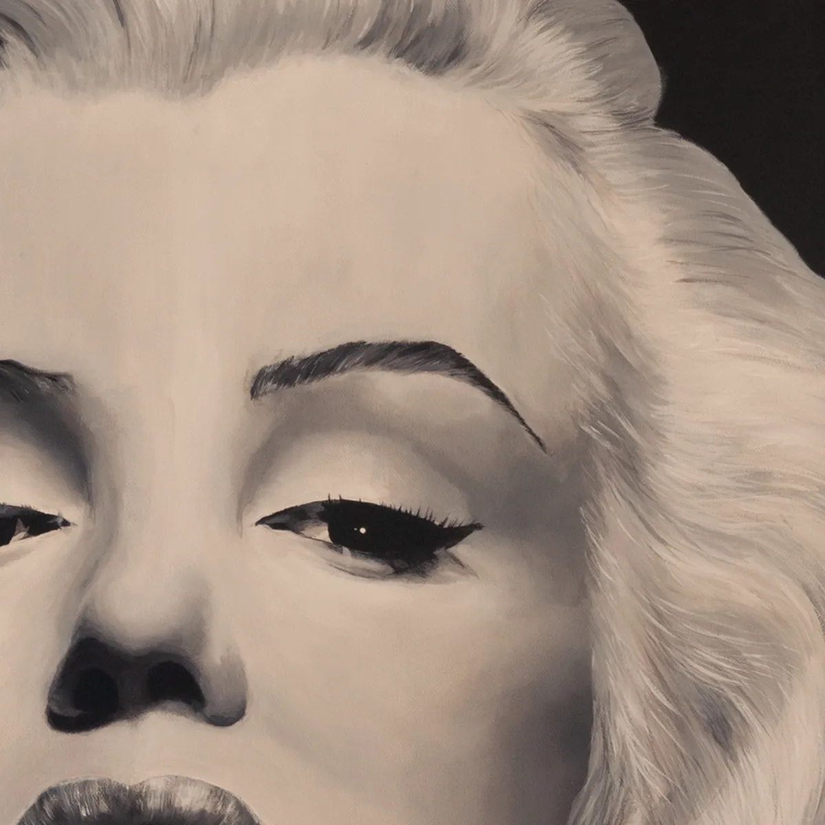 Iona wanted to paint her in a photo realism style to showcase her technical skills as an artist , but also paying tribute to a cultural icon. Iona’s painting is a testament to the enduring appeal of this iconic figure.